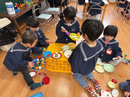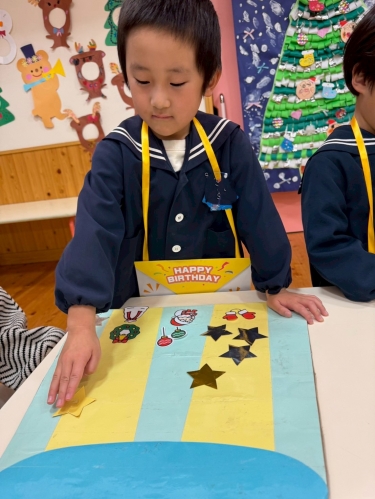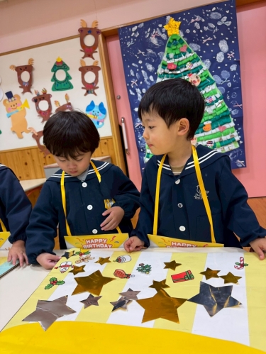 お友達のみんなと「そこだよ!!ここがいいね!!」と立派なクリスマスツリーが出来ました☆彡