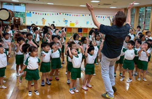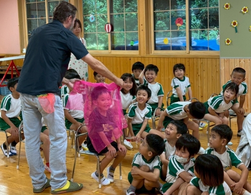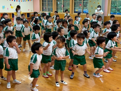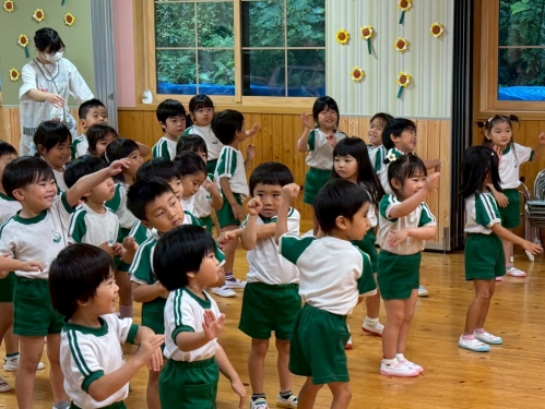 年中さんはバルーンをやります♪暑い中毎日、楽しそうに練習をしているGiraffeさん!