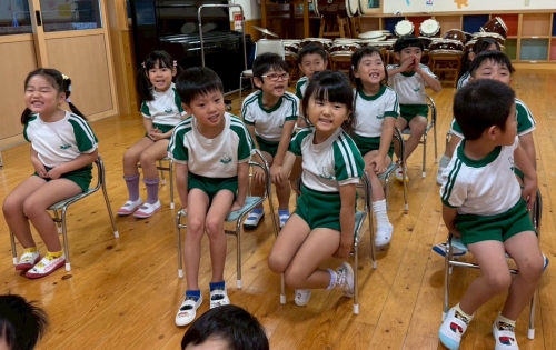 新しい遊具で遊んだり、年中さんのバルーンの練習をお手伝いをしたり、3学年合同の競技を頑張ったり、稲刈りをしに行ったりととても楽しい1ヶ月でした!!